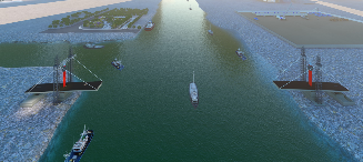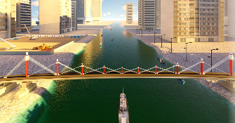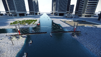 | 1、拆除邊跨滿堂支架; 2、安裝運輸索; 3、兩側同步采用浮吊吊裝鋼箱梁; 4、吊裝后采用臨時拉索錨固。 |